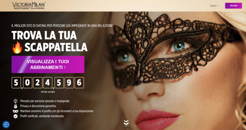 Victoria Milan è un sito di incontri online che si rivolge a persone sposate o impegnate che cercano avventure extraconiugali.